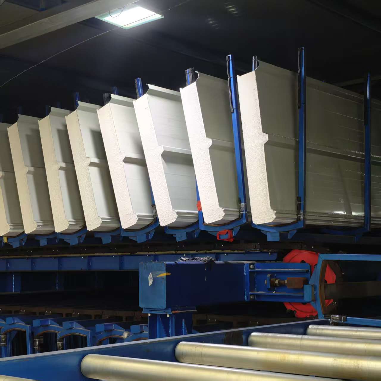 High strength Make full use of the rigidity of the metal molding plate, have better anti-tramplingperformance, and set up additional layers (structures) such as lightning protection and walkways on the roof. Excellent waterproofing The first-level waterproof structure provides three fixing methods: point fixing, no perforationfixing and bonding method, forming a first-level waterproof roof system with both rigid andflexible and excellent thermal insulation. Keep heat well The wave crest of the molded plate is filled with polyurethane rigid foam, which improves thethermal insulation and mechanical properties Install quickly Highly integrated construction, installation speed is fast.