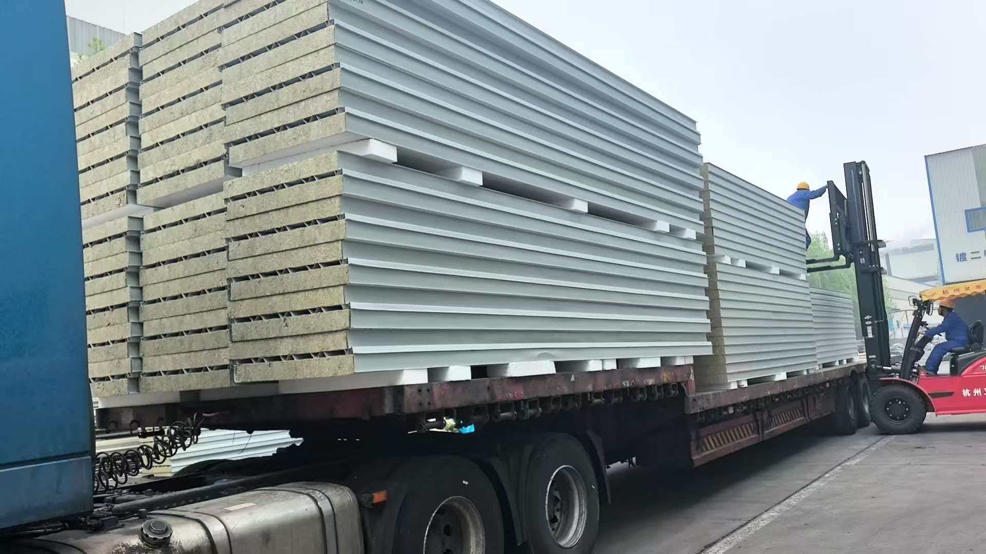 Lagerwandsystem & Dachsystem, Werkstatt großer Unternehmen, Reinraumwandpaneele & Dachpaneele, feuerfest & wasserdicht, die Isolierung ist gut, auch schallresistent, daher ist die Verwendung von Steinwolle/Glaswolle-Sandwichpaneelen sehr verbreitet. Egal ob Bürogebäude oder Lagerhalle einer Fabrik, die Sandwichpaneele aus Steinwolle sind preislich besser und angemessen im Vergleich zu PU. Sowohl Dach- als auch Wandverkleidungen können wir anbieten, sogar das Zubehör, wie Kappen und Zeichnungen, Sie müssen nur nach Erhalt der Produkte installieren.